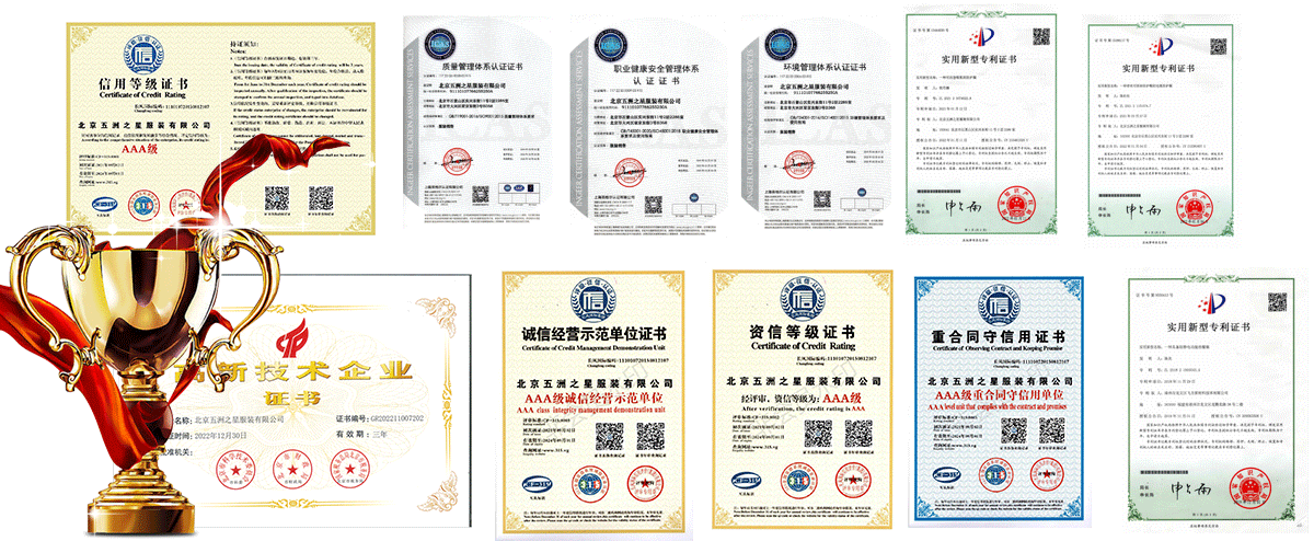五洲之星是一家專注于高品質(zhì)工作服定制的廠家,也是一家具備深厚文化底蘊(yùn)的服裝企業(yè)。作為一家集創(chuàng)意、設(shè)計(jì)、制版、生產(chǎn)、銷售為一體的服裝公司,以"統(tǒng)一著裝,形象非凡"的產(chǎn)品理念,專業(yè)經(jīng)營職業(yè)裝、工作服、工服、夾克、行業(yè)制服、校服、T恤衫等系列產(chǎn)品。為多家國企單位、航空公司、科工集團(tuán)、化工能源以及金融企業(yè)和政府學(xué)校提供了專業(yè)的團(tuán)體服飾訂做服務(wù)。公司以過硬的質(zhì)量、實(shí)惠的價(jià)格、高效率的訂做與良好的售后服務(wù),秉著"站在客戶的角度著想,努力為客戶降低成本,用效率與誠意打動(dòng)客戶"的工作理念,受到廣大客戶的一致好評(píng),并在業(yè)內(nèi)擁有良好的口碑。五洲之星可以根據(jù)客戶的要求,為客戶量身制作具有客戶公司特色的服裝。公司全體同仁歡迎國內(nèi)外客戶來電來樣洽談,并感謝您選擇我們的服務(wù)。